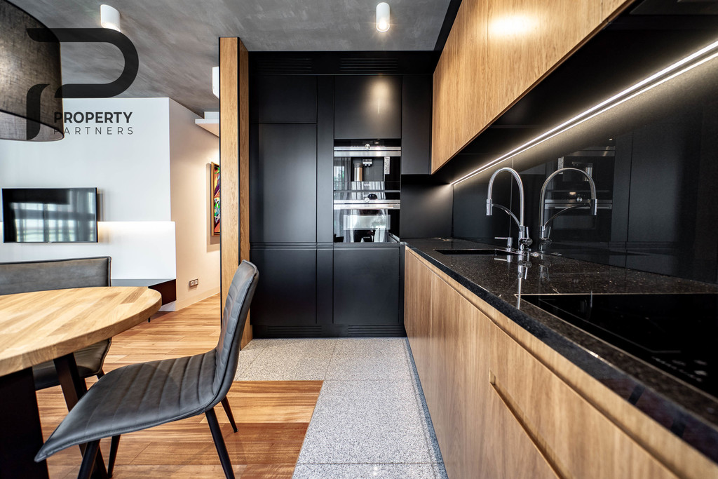 – apartment designed by an architect, – kitchenette equipped with complete household appliances and electronics: (fridge, dishwasher, oven, hob, hood,